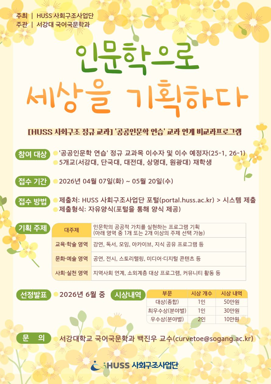 [HUSS 사회구조 정규교과] '공공인문학연습' 교과 연계 비교과프로그램 안내